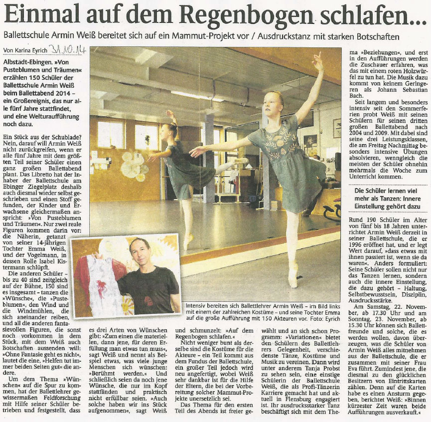 Link zum Vorbericht im Zollern-Alb Kurier: Acht Elevinnen tanzen ihre Träume